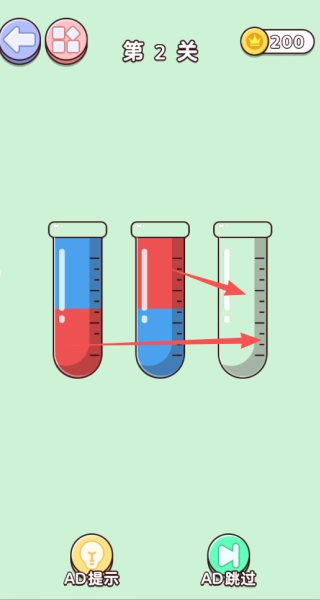 3. 每一关都经过细致的平衡性调整,保证玩家经过合理思考后都能找到通关方法,使玩家在挑战过程中持续收获成就感。核心玩法为颜色分类排序,目标是把杂乱分布的彩色液体通过转移操作,最终使每个试管仅容纳单一颜色的纯净液体。2、玩家需遵循“颜色匹配”与“空间足够”两大基本原则,唯有试管顶部颜色一致且目标试管有充足空间时,方可完成液体倾倒。3、这类简单规则的背后,却包含着丰富的策略可能性,需要玩家全面考量每一步的后果。