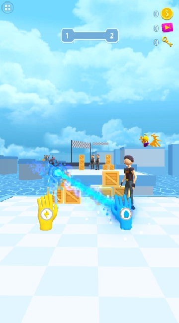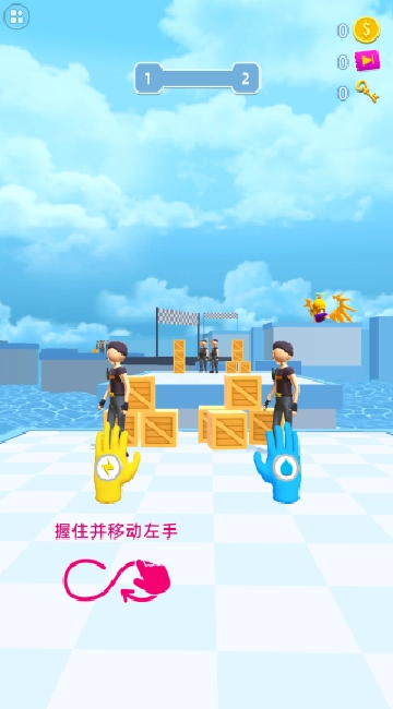 操作颇具特色,需要你用左右手手指分别操控屏幕左右两侧,以此控制小球对应的左右手手套完成攻击与移动。