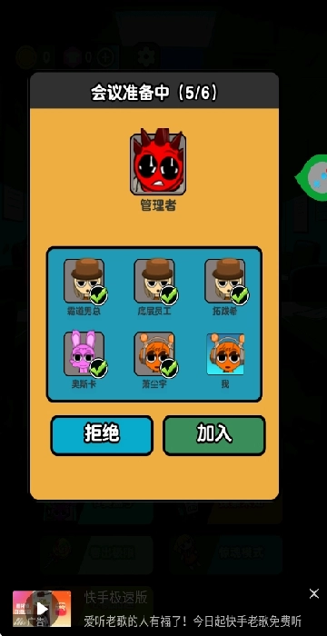 如果你选择打工人这个身份,点击“加入会议”按钮就能开启游戏啦。