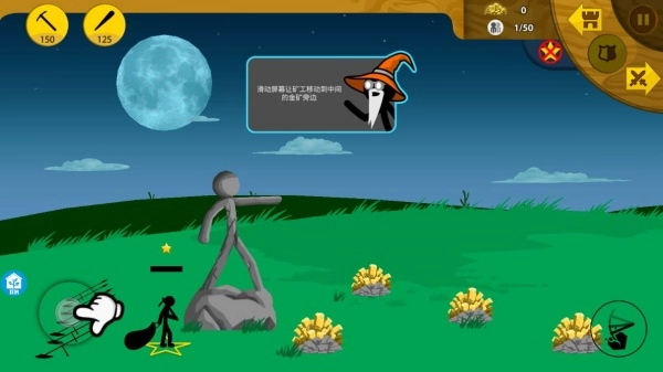 从训练矿兵开始,通过滑动屏幕来指挥矿兵前往金矿进行矿物挖掘。