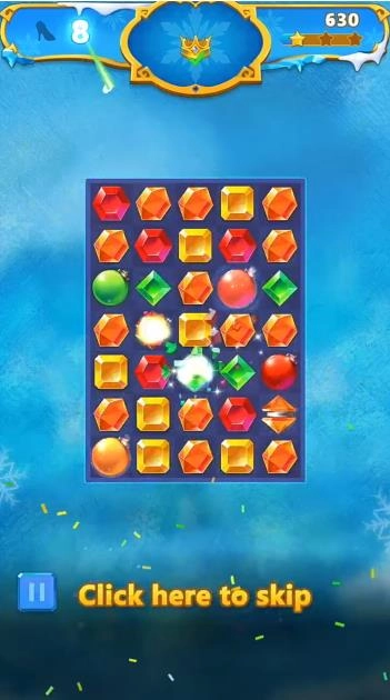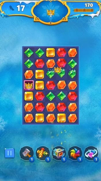 3. 每位玩家都能创造独属于自己的冰雪冒险回忆。点击并滑动宝石,完成基本消除操作。