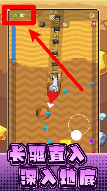 2. 屏幕左上角会显示当前持有的金币数量,这些金币可用于后续升级挖掘工具或购买强化道具。