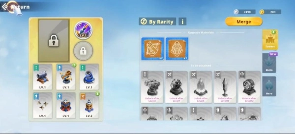 对城堡进行升级并提升科技树等级,解锁威力更强大的防御塔以及更高阶的英雄,以此增强整体战斗能力。