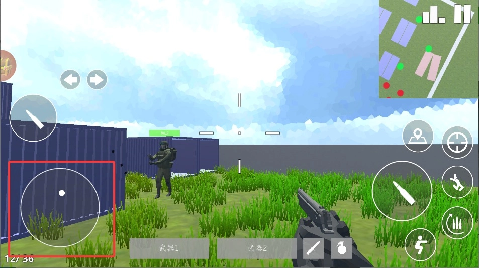 1、左侧的虚拟摇杆用于操控角色的行进方向,战斗时可借助掩体开展战术移动,同时要留意观察战场地形,以此挑选出最优的进攻路线。