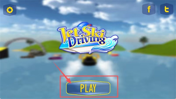 进入游戏启动界面后,找到那个带有红色边框、旁边还有箭头指示的蓝色“PLAY”按钮,点击它就能开启水上摩托游戏了。