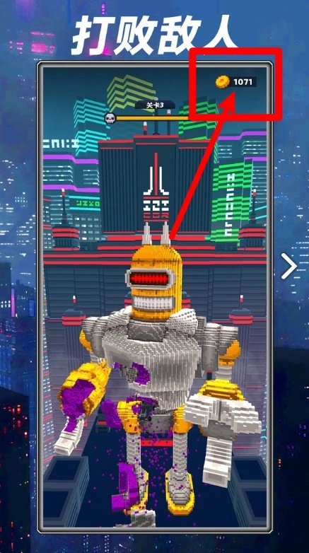1. 战胜巨型机器人敌人能获取丰厚的金币奖励,右上角的金币总数会实时更新,十分醒目且直观。