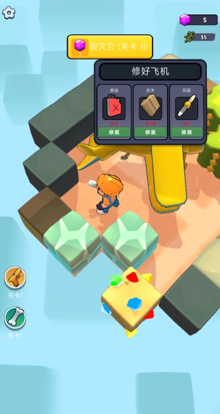 使用工具修复飞机,解锁更多的道具与物品。