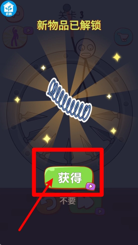 1. 已成功解锁新道具弹簧,点击“获得”按钮即可立即领取该道具,供后续挑战关卡使用。