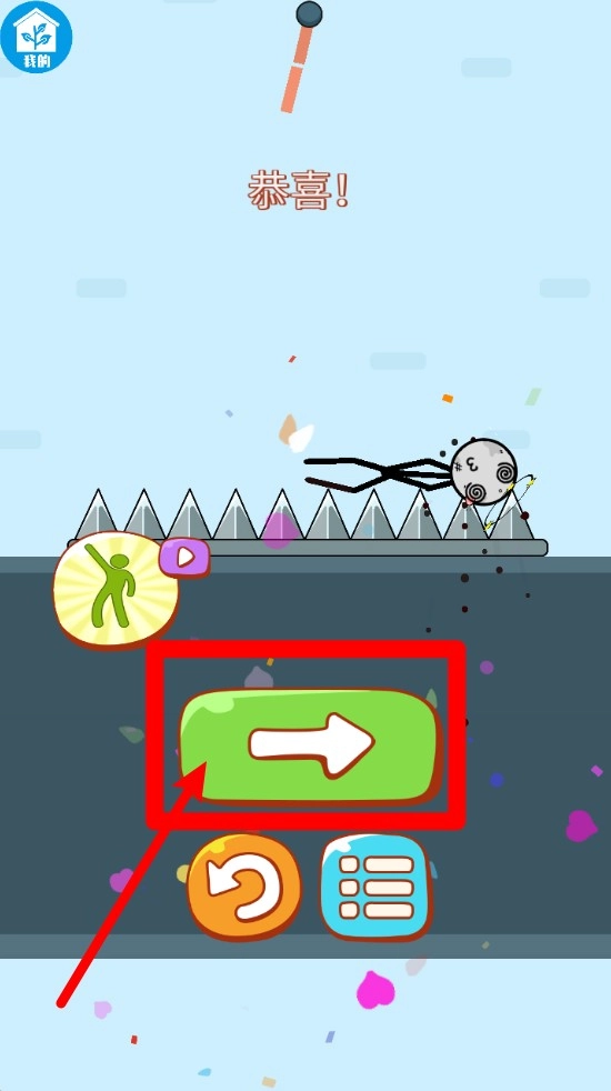 3. 游戏通关后,系统会自动弹出“恭喜”提示,此时点击绿色的右箭头按钮,就能进入下一关继续游玩。