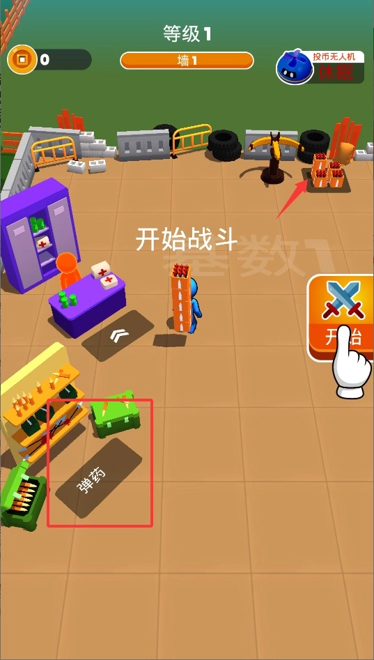 1、开局先拖动弹药箱到防守区域,点击屏幕中央的启动按钮,倒计时结束后第一波僵尸将从右侧出现。