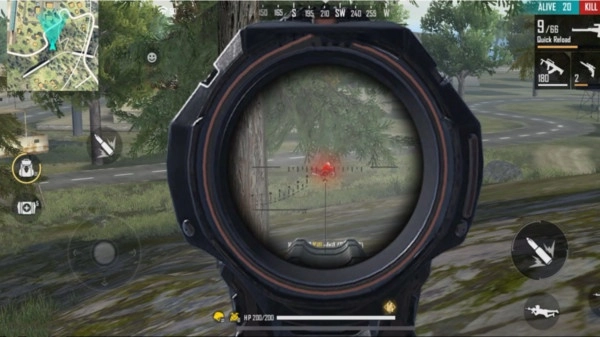切换使用狙击枪,可借助倍镜精准瞄准并狙杀敌人,灵活运用狙击枪开展偷袭作战吧!