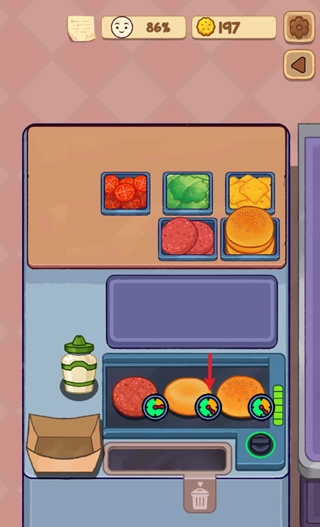 在制作汉堡的过程中,玩家要留意火候与时间的把控,这样才能保证汉堡的品质。
