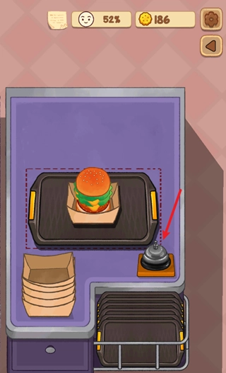 接下来我们把做好的汉堡装进盒子里,放到餐盘上,按一下铃就可以了。
