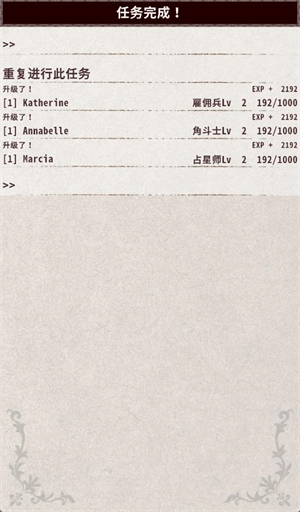 任务胜利后,可获得经验值与敌人掉落的道具。
