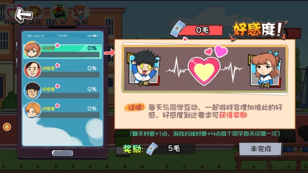 NPC社交系统:和同学、老师进行互动能够提升好感度,进而解锁专属的故事线。