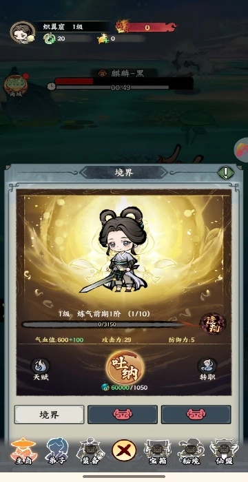 要记得点击角色页面去升级吐纳,这样才能让你的属性持续得到提升。