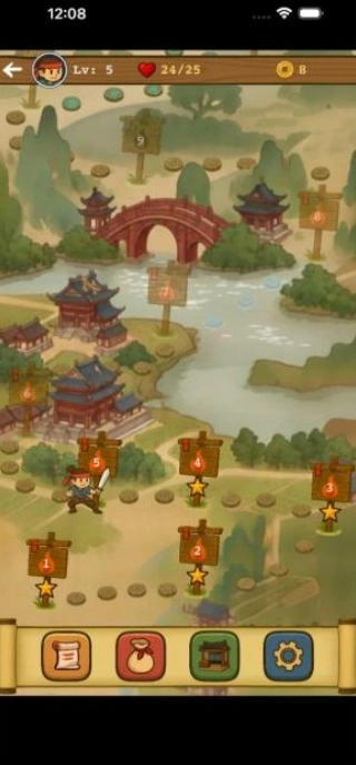 进入主界面后选择章节关卡,每一章节对应不同的难度与汉字范围。
