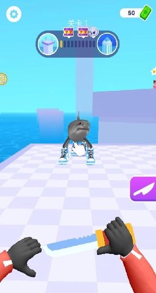 安装游戏后进入第一关,拿起刀具勇敢地面对怪兽,果断出击。
