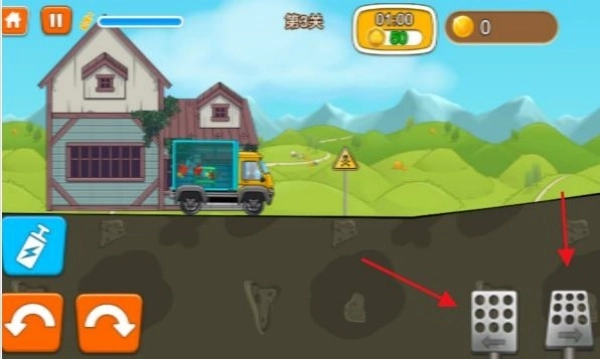 进入关卡后,点击右侧按钮,就能控制车辆前进或刹车。