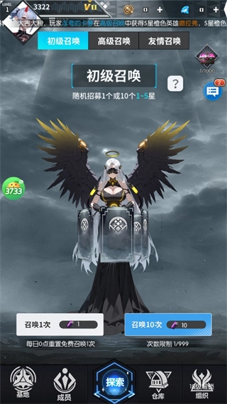 进入游戏后会有新手引导教程,跟着指引点击召唤按钮,就能召唤英雄加入队伍。