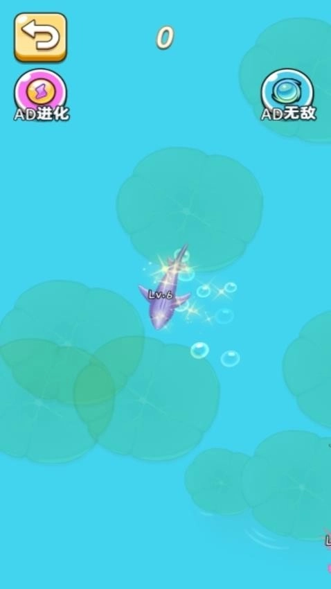 小鱼会主动靠近体型比自己小的同类或鱼群,将它们吞噬掉。随着吞噬数量的不断累积,小鱼的等级会随之提升,完成进化,进而有能力去挑战体型更大的目标。