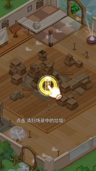 进入游戏后,首先要做的是清扫垃圾,点击对应的按钮就能清理场景里的垃圾了。