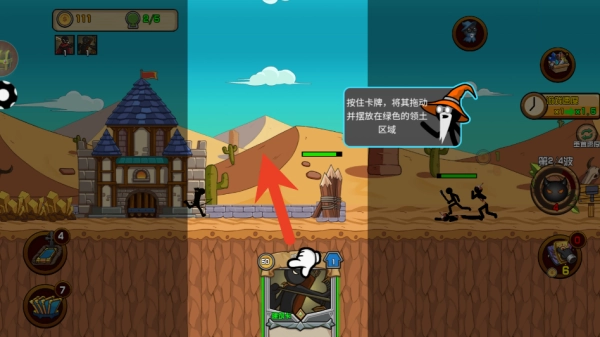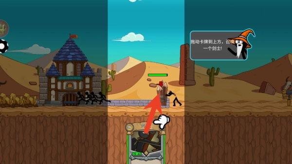 布置第一道防线:在敌人行进路线的两侧安排防御单位,花费金币抽取新卡牌(每30秒会自动获取金币,消灭敌人还能得到额外奖励)