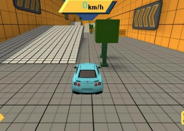选择解锁蓝色车辆,驶入赛道,操控方向躲避障碍物,朝着指定区域行进。
