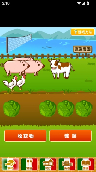 点击猪猪就能得到猪肉,点击牛就能得到牛肉,下面的青菜和鸡也是如此操作即可获得对应的物品。
