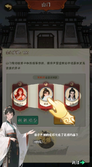 在山门里能够招募到不同品质的弟子,要留意那些优质弟子,不妨重点对他们进行培养。