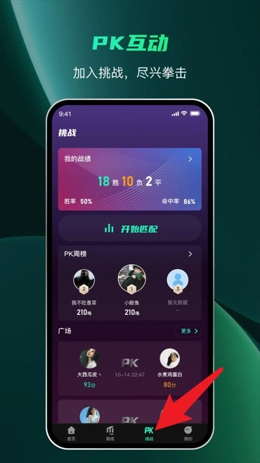 进入挑战广场中心,就能匹配用户参与拳击PK挑战,从而了解自身的战况水平。