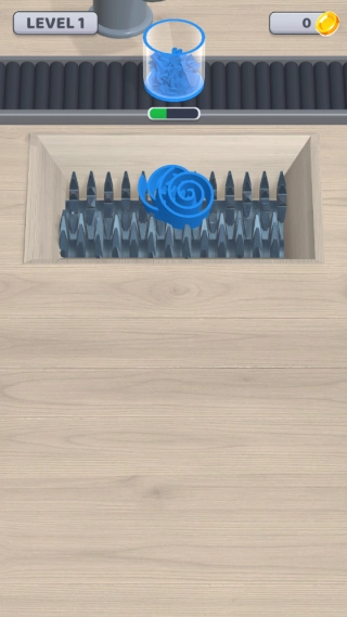 玩家可通过点击或滑动操作来控制粉碎机的移动轨迹,当粉碎机与彩色木块发生接触时,便会自动对木块进行研磨粉碎处理。而粉碎后产生的碎屑,则会自行归集到与木块颜色相匹配的玻璃容器内。
