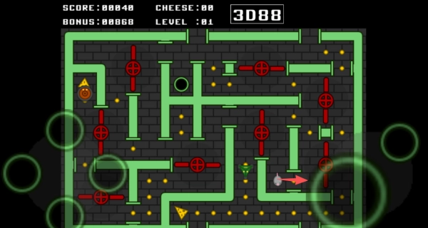 你可以通过左下角的方向键操控老鼠移动,让它在迷宫的各个角落灵活穿梭。