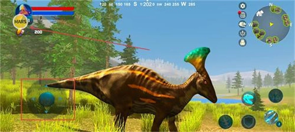 玩家借助虚拟摇杆操控恐龙的行动,得持续搜寻食物与水源,以此维系生命值,同时推动自身的成长与进化。