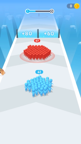 通过滑动屏幕来操控角色移动方向,指挥初始的小人群在地图里行进,接近并吞并那些规模比自己小的人群,让队伍的人数持续增加。