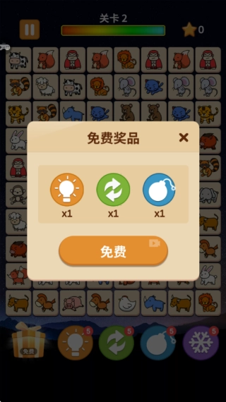 另外,在闯关的时候,点击画面左下方的礼物图标还能领取免费道具哦!要是碰到难关,不妨用道具来帮忙吧!