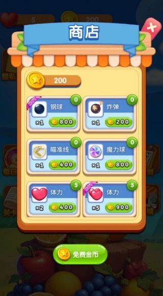 商店里有多种功能道具可供购买,这些道具能够补充体力值,帮助玩家持续进行关卡挑战。