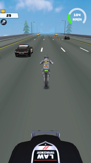 双视角系统支持自由切换,第一人称视角能还原头盔雾气与速度线特效,第三人称视角可调节镜头距离,高速状态下的动态模糊还能增强沉浸感。