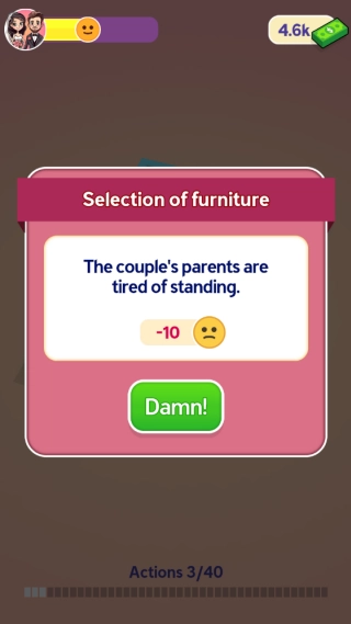 如下图所示,玩家的不同选择会对应不同的评价结果。这些评价会被累计到左上角的情绪条中,一旦情绪条数值过低,挑战就会宣告失败!