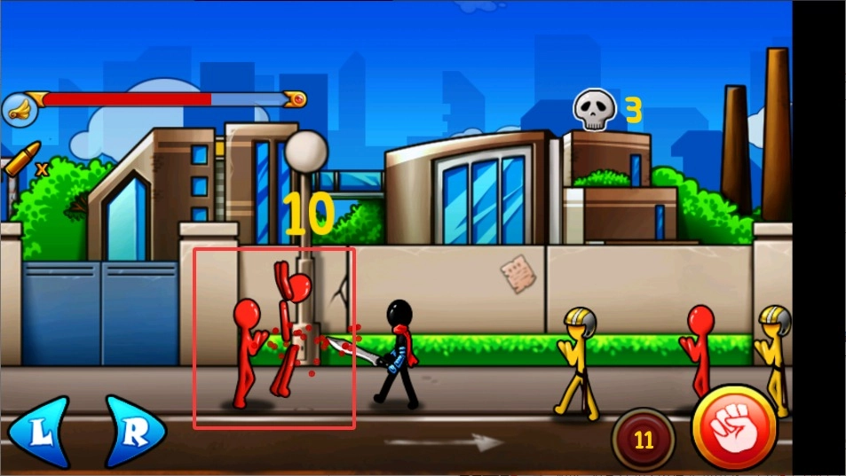 进入战斗界面后,点击屏幕左侧来操控火柴人左右移动,通过灵活调整位置躲避敌方的攻击,与此同时留意并寻找反击的时机。