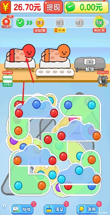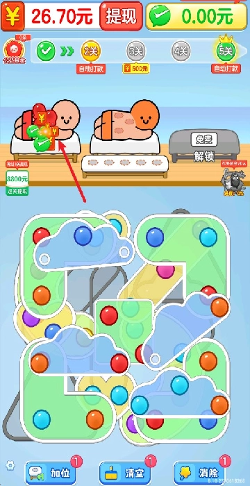 在闯关的过程里能够积累红包奖励,当达到特定阶段时就可以进行提现,这样一来能增加游戏的吸引力。