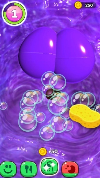 点击海绵可触发清洁互动,完成后能获取金币奖励。