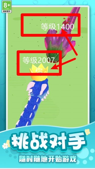 3.等级碾压制胜:时刻关注自己与敌蛇等级差距,利用体型优势发起包围攻击,一举吞噬对手实现连锁成长称霸排行榜。