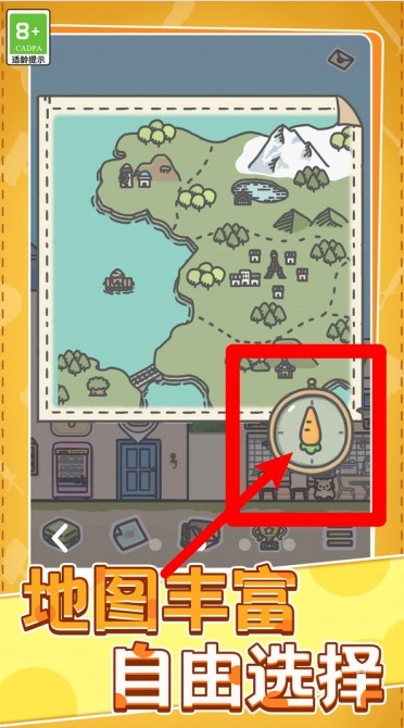 3.地图自由探索:点击地图可查看不同地区的探索点,自由选择旅行目的地,规划自己的节奏与冒险路线。