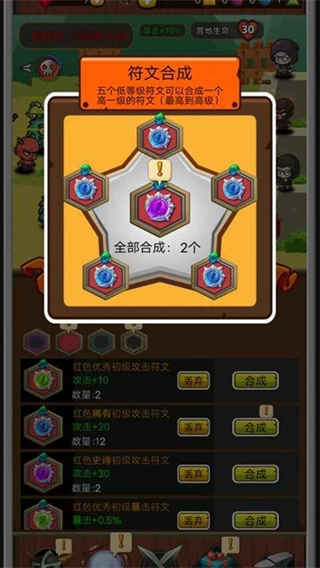 点击左下角的符文功能进行符文合成,能够持续增强队伍的实力。