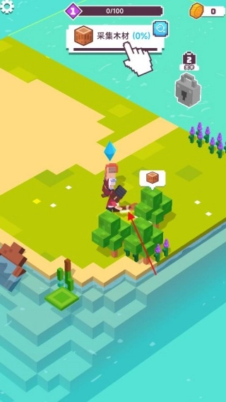 按照手指的引导点击树木所在的区域来采集木材,完成这一步后接着点击周边的树木,通过批量收集木材的方式,更快地满足任务对资源的需求。