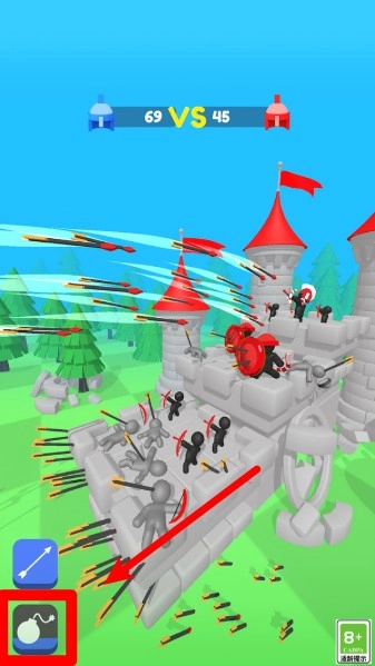 2.使用炸弹图标释放范围攻击,可快速清除大量敌人单位,建议在敌军密集推进时及时使用获取优势。