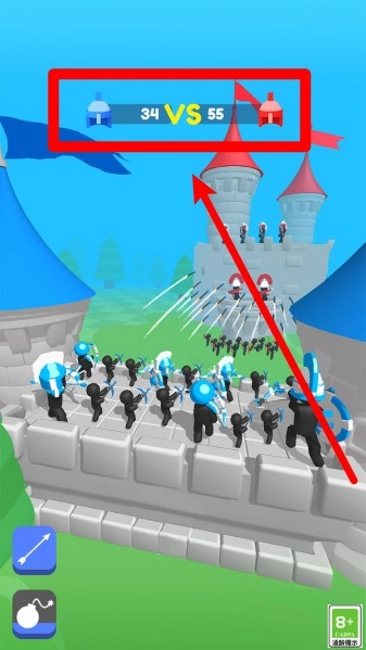 3.顶部战力比显示当前双方士兵数量,实时掌握战局变化,有助于判断是否该反攻或继续加强防守。