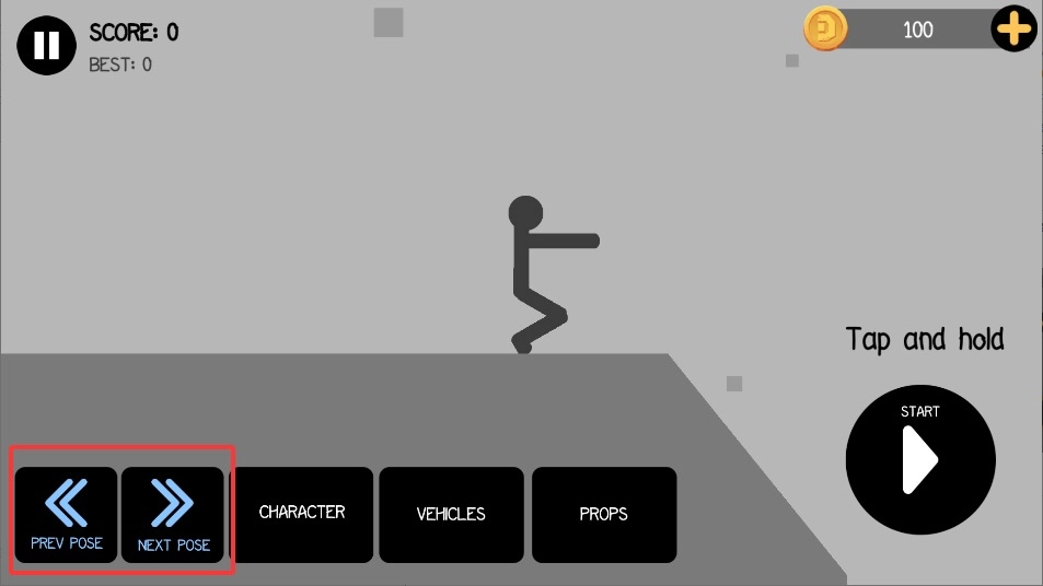 1、游戏启动后,通过点击屏幕左右区域控制火柴人前进或后退,灵活走位可避开高空坠落的障碍物。