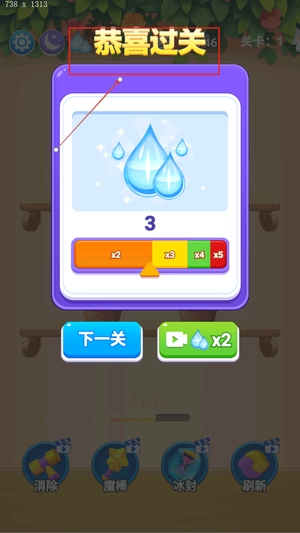 借助特殊道具的组合来冻结花盆之类的障碍,从而完成关卡所指定的目标。